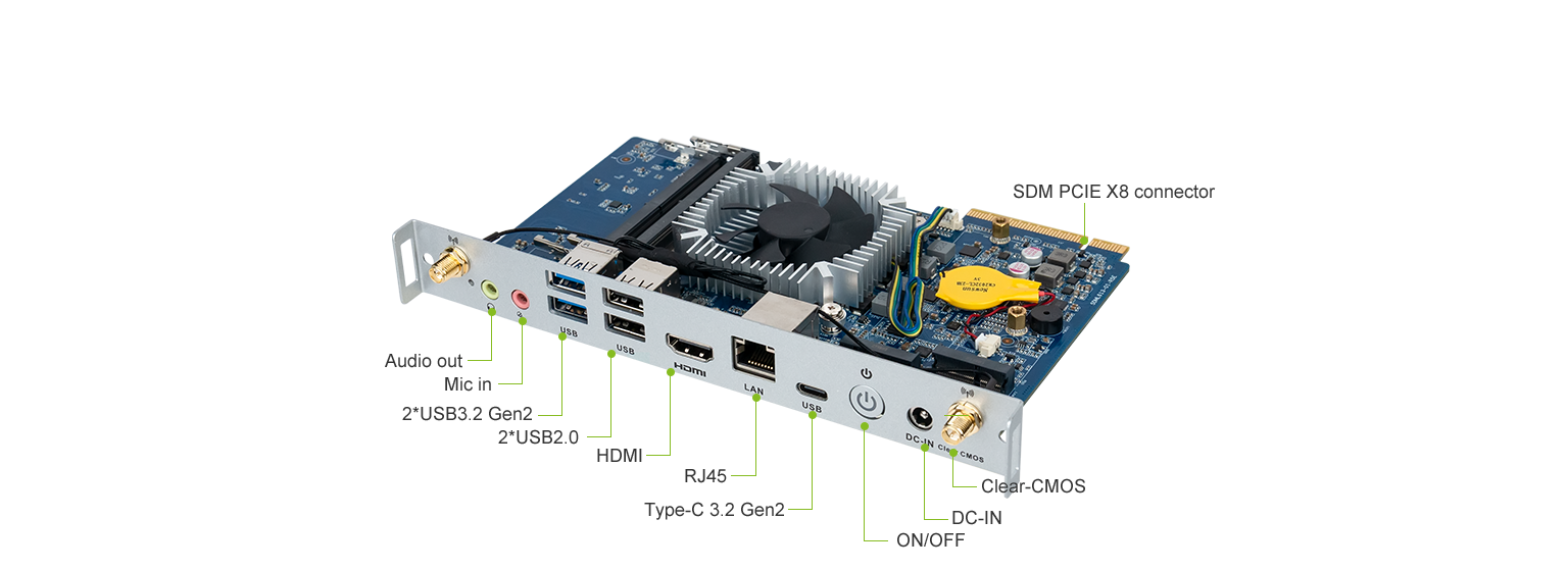 优秀的视频显示,米兰milan科技SDM-L613拥有1个HDMI (7680 x 4320 @60 Hz)接口,支持60HZ刷新率,实现8k超清显示,SDM(PCIE X8)可以传输 HDMI2.0 (4096 x 2304 @60 Hz)、DP1.2 (4096 x 2304 @60 Hz)、USB3.2 Gen1、UART、GSPI、I2C、PCIe 和 SYS_FAN 信号连接。