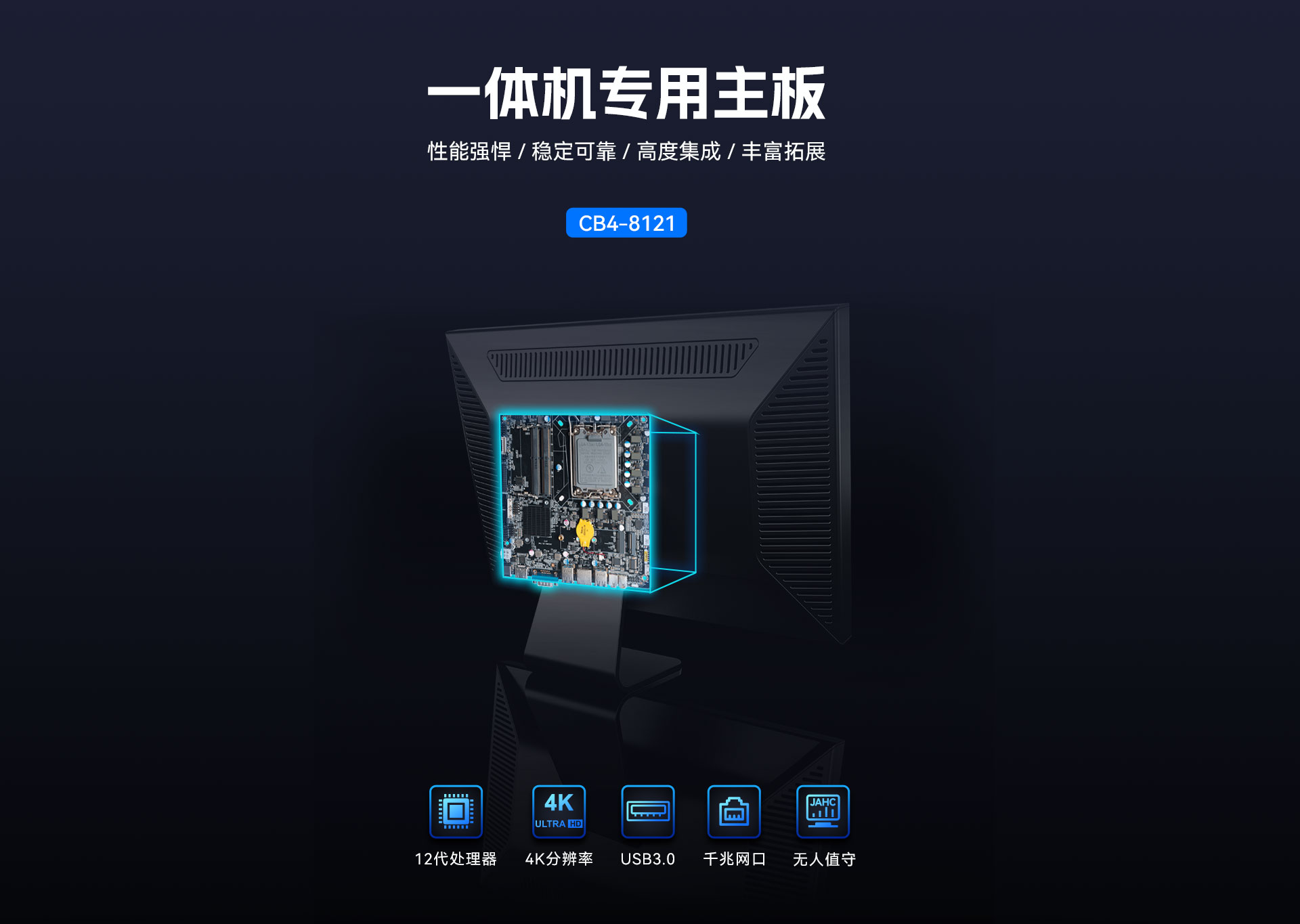 而一体机主板作为一体机的核心组件,其性能直接决定了整机的表现,米兰milan科技根据以上的市场情况及客户需求,推出这款高性能的基于Thin mini ITX一体机标准设计的一体机专研主板CB4-8121。