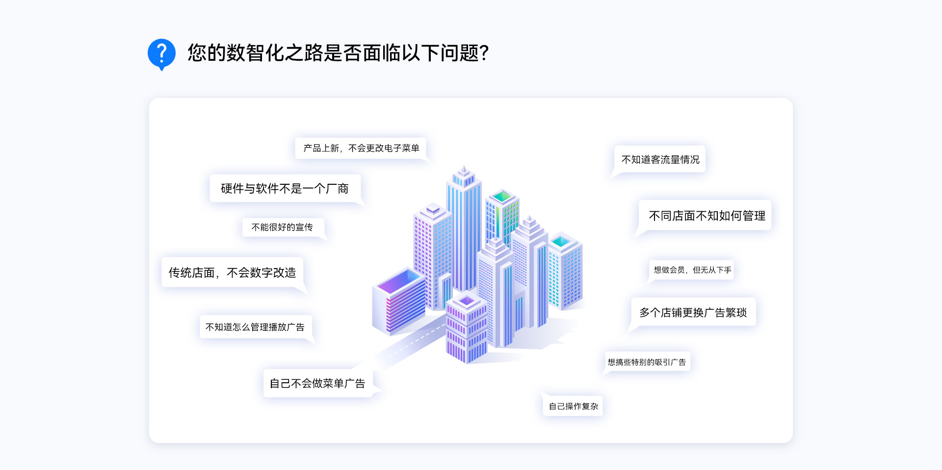 在酒店、大堂、商场、会议大厅,尤其是在餐饮行业及零售业,设置更生动的广告,发布具体的信息,每一个路过被广告吸引到的人,都可能成为潜在的客户。