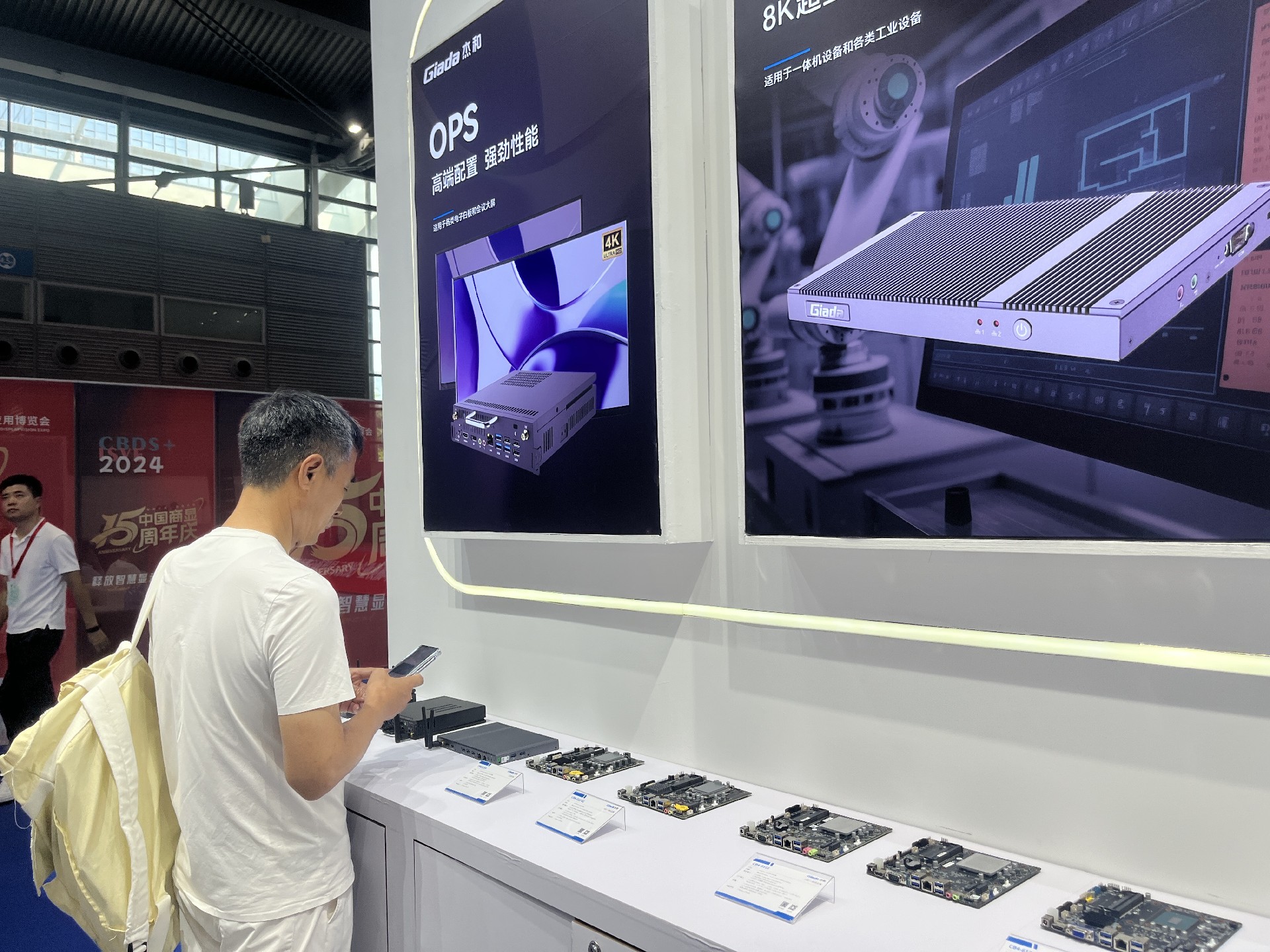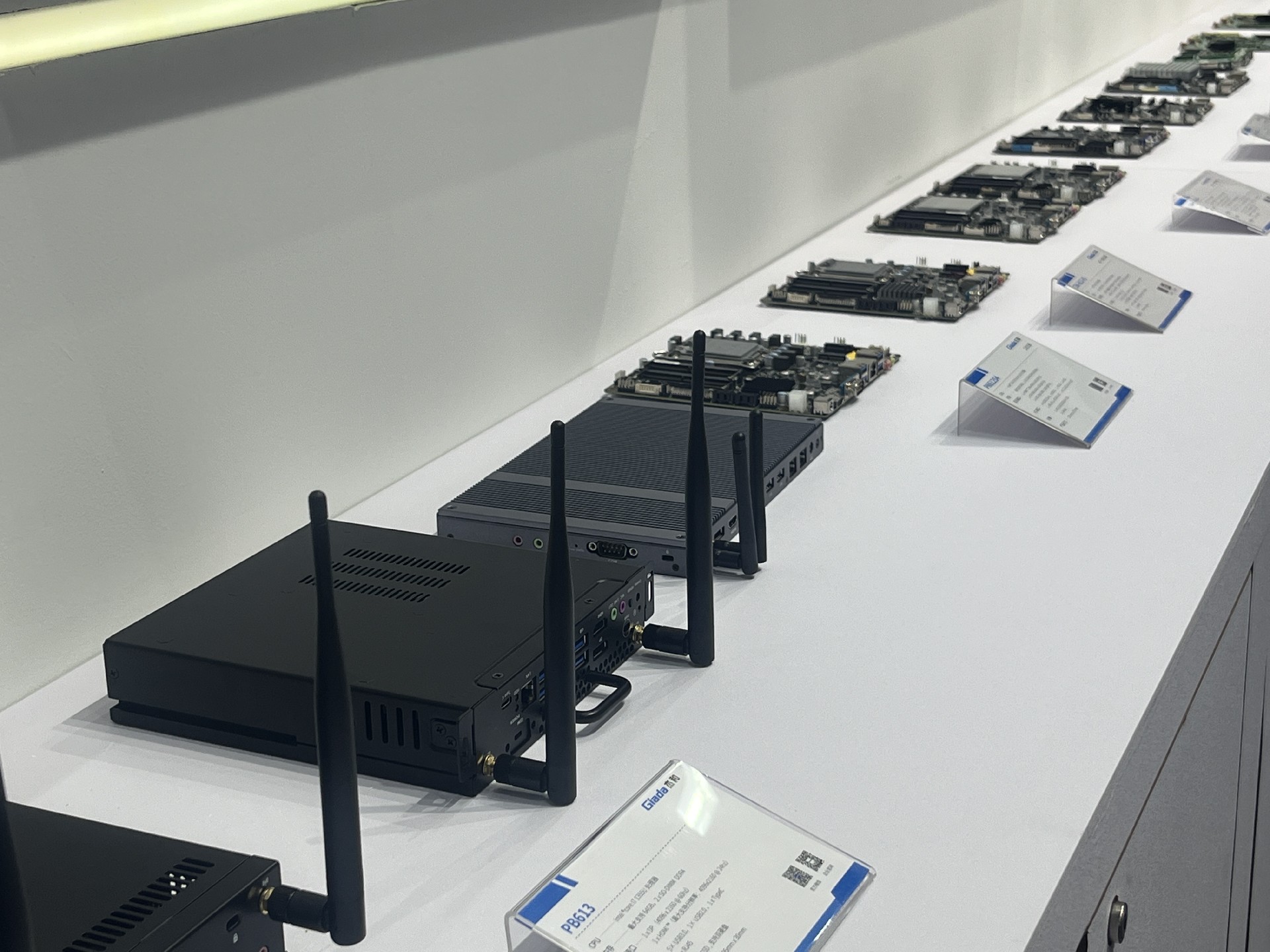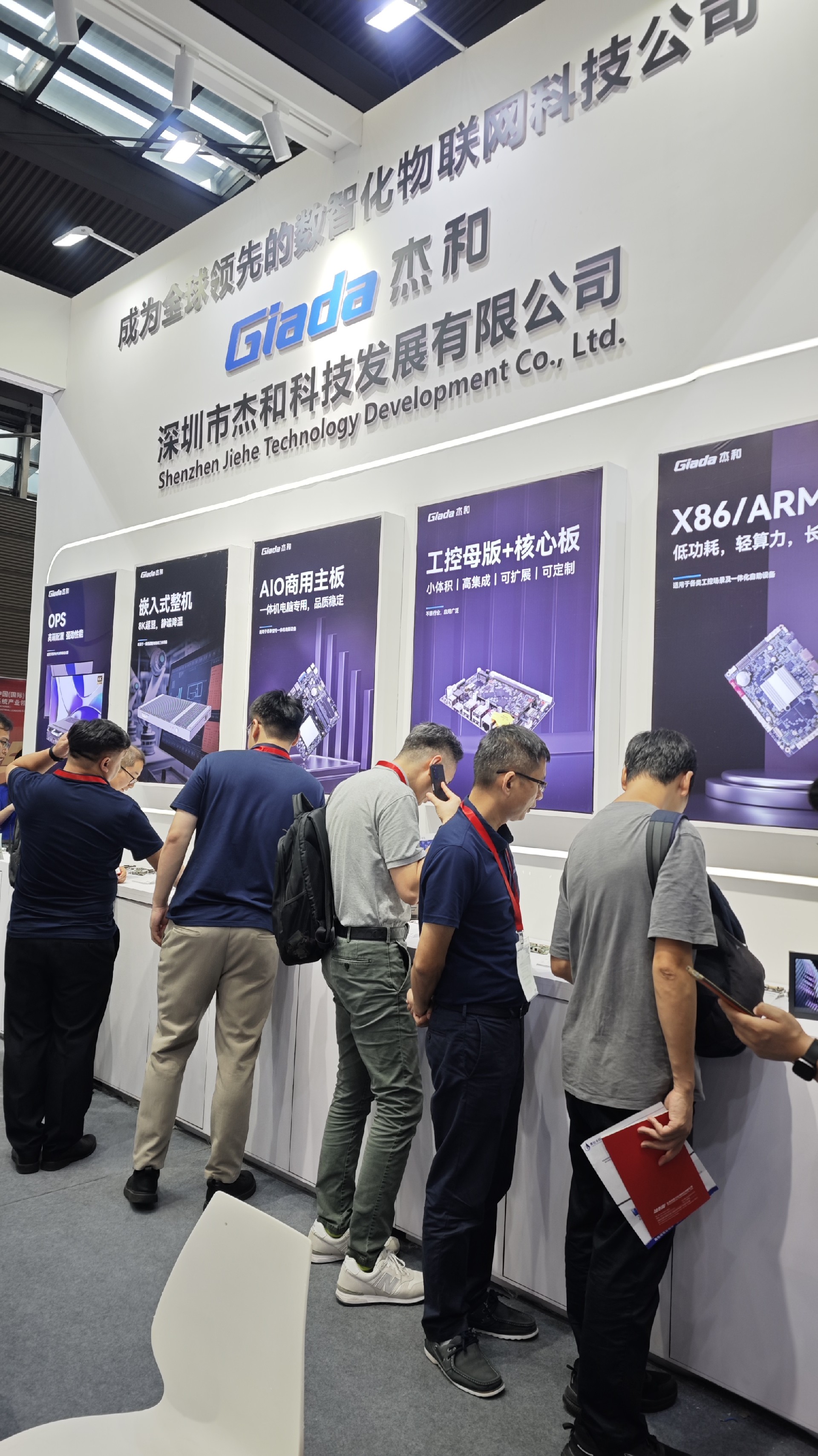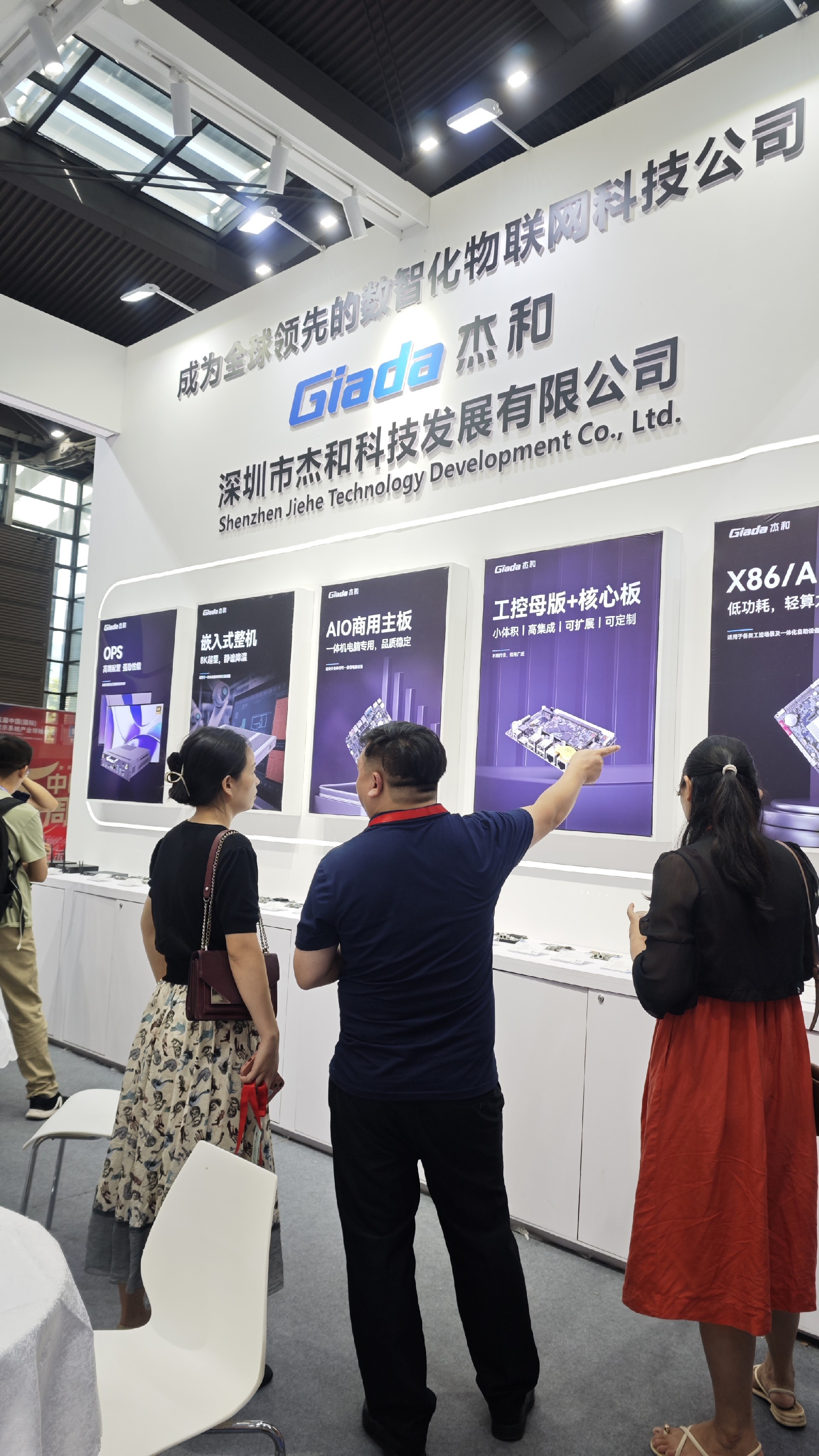 米兰milan科技展位放置在c位的明星产品和最新产品吸引了众多参观者的目光。展台下方整齐排列着公司的产品,包括主板、嵌入式整机、OPS等,这些产品不仅适用于商业展示领域,还广泛应用于工业、制造业和教育业等多个行业。