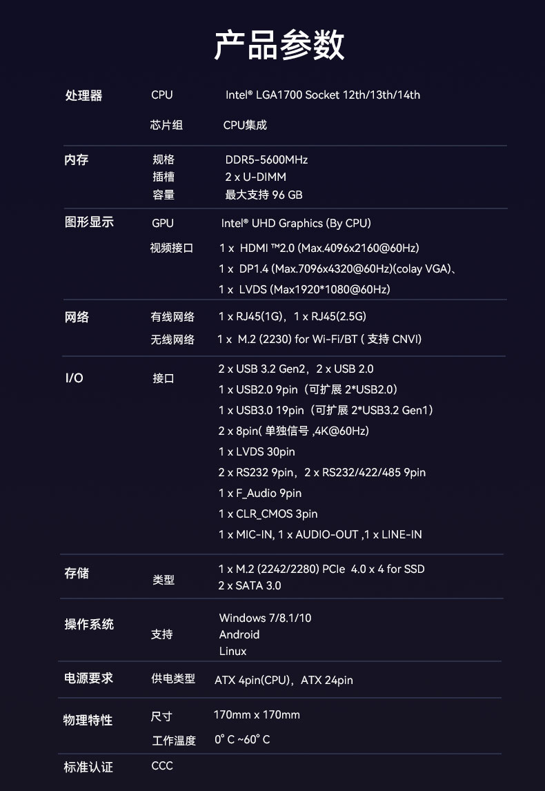主板提供PCIe 5.0 x 16扩展槽,可实现自助服务终端高速图形处理和数据传输的需求。