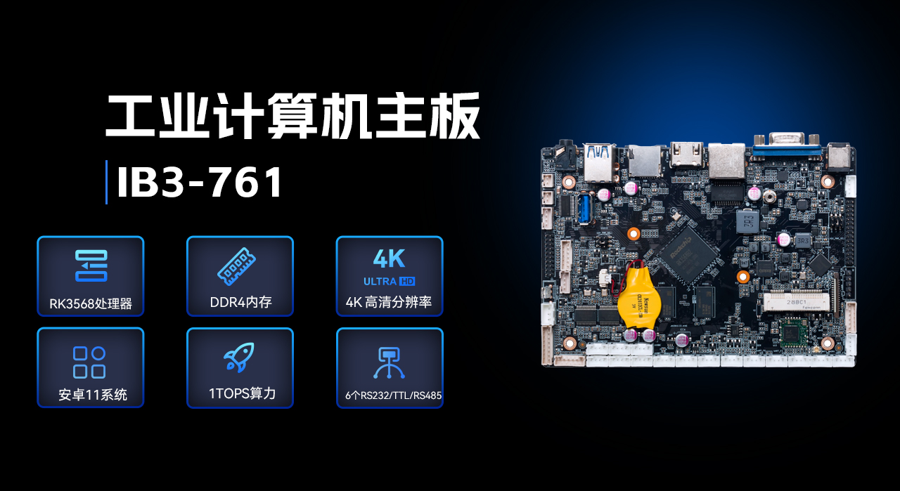ARM主板IB3-761基于瑞芯微RK3568四核64位处理器开发,可实现多任务并行、更大数据集的高效处理,丰富的接口,具有性能强、内存大、集成度高、扩展能力强等特点,在处理速度和图形处理能力方面都表现出色,可广泛应用于物联网网关、边缘存储、工控平板、工业检测、工控盒、自助终端、云终端、车载中控、机器人等行业定制市场。