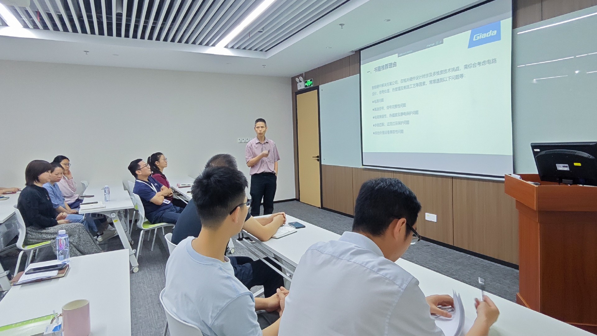 硬件开发部的丁琴华分享了《微创新:5种微小改变创造伟大产品》一书的读书心得。他介绍了书中提出的五种微创新方法,并结合多个企业的产品案例进行了讲解。