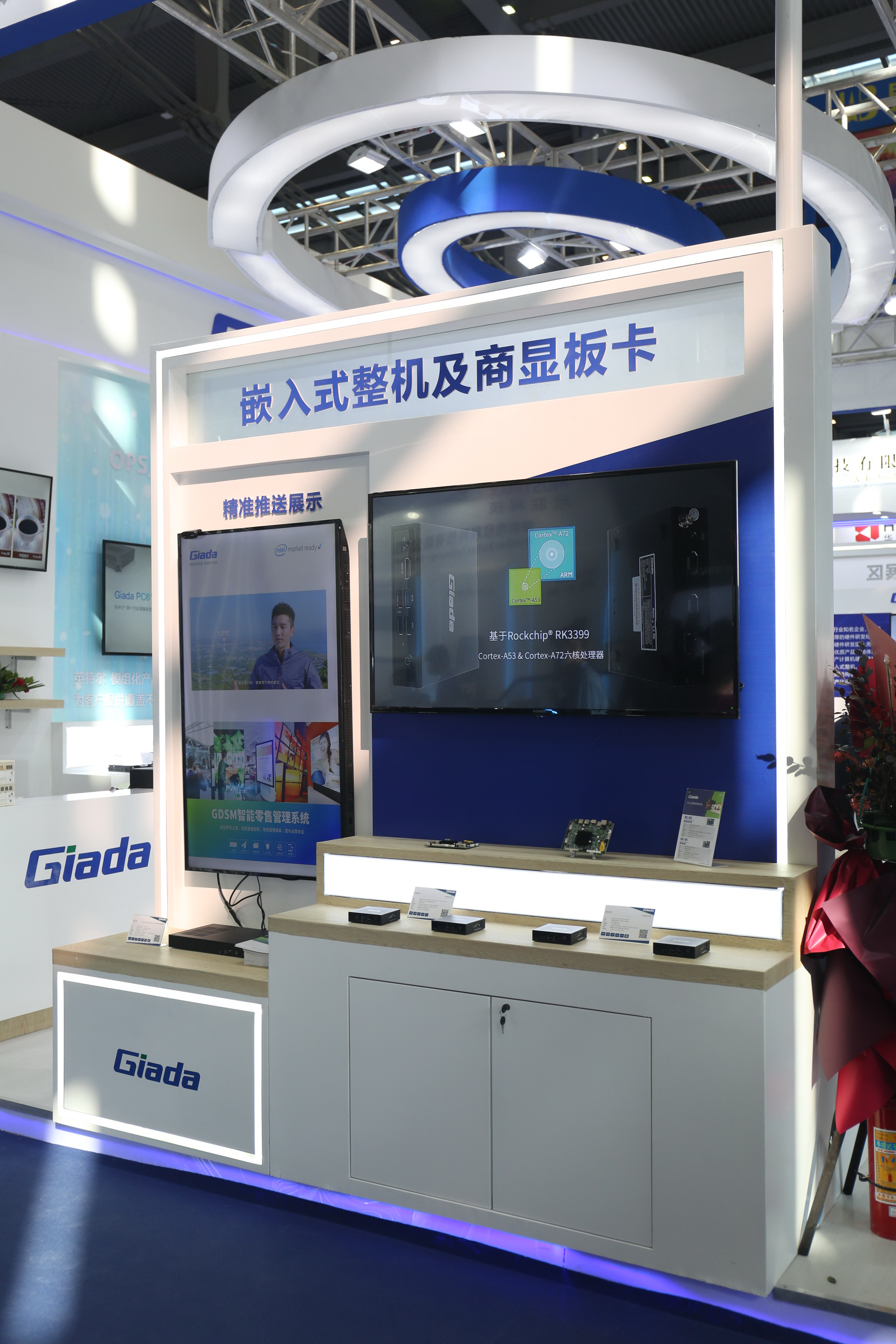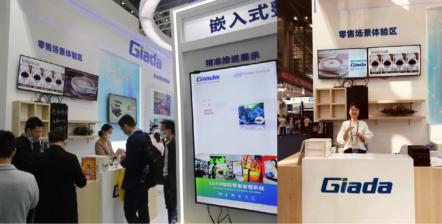 紧邻ARM架构商显产品集的精准推送展示区与零售门店模拟展区,共同组成了本届展会米兰milan科技展位的一大精彩设计。场景展现了GDSM智能零售管理系统在零售门店场景下的展示效果,顶部的数字标牌由GDSM系统推送内容,模拟搭建了针对人流动线的广告精准推送形态。