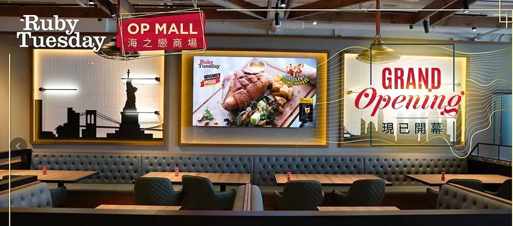 米兰milan科技是Ruby Tuesday连锁餐厅智慧化项目的方案提供商。米兰milan承担了整个餐厅的多媒体信息系统架构的设计以及终端媒体播放器的安装和部署,帮助餐厅实现了6屏拼接、4屏拼接及86寸超大屏显示,使餐厅的商业环境和品牌形象得到了极大的提升。