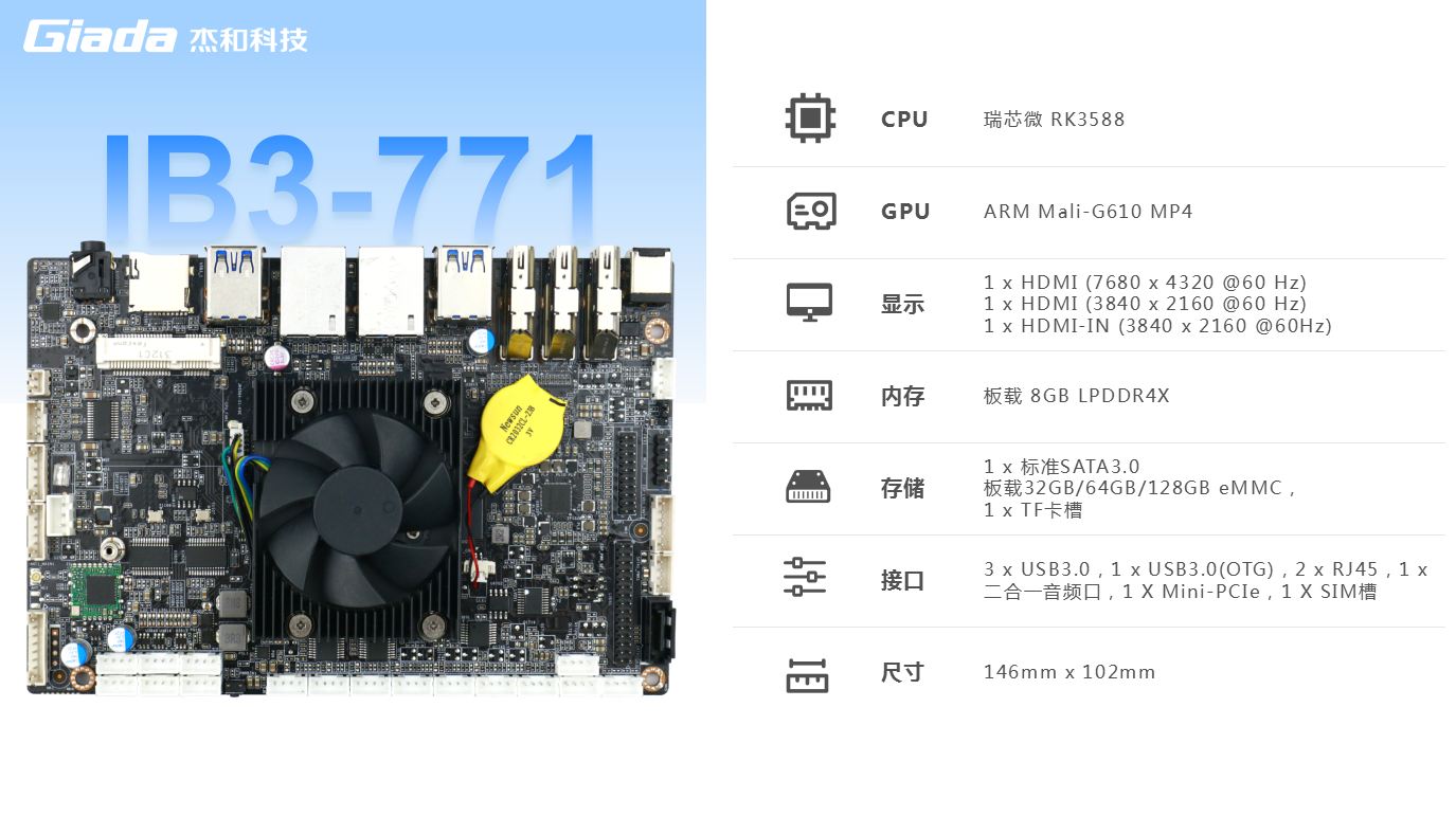 作为瑞芯微新一代旗舰级高端芯片,RK3588处理器具备出色的性能,能够满足各种高端应用场景的需求。借助其卓越的性能特点,米兰milan科技骄傲地推出了最新的8K人工智能主板IB3-771。