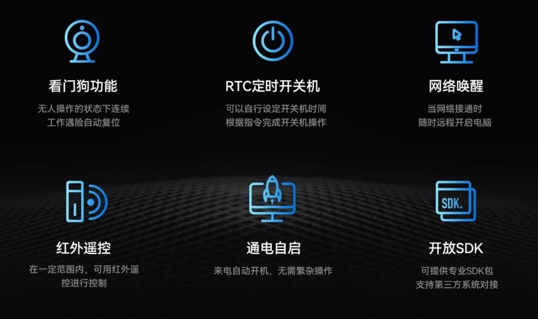米兰milan主板IB3-771配置了无人值守专利技术,大力降低因高算力带来的能源消耗,该技术通过定时开关机、看门狗计时器、RTC宕机自检、红外遥控和局域网唤醒等功能实现主板绿色运行。