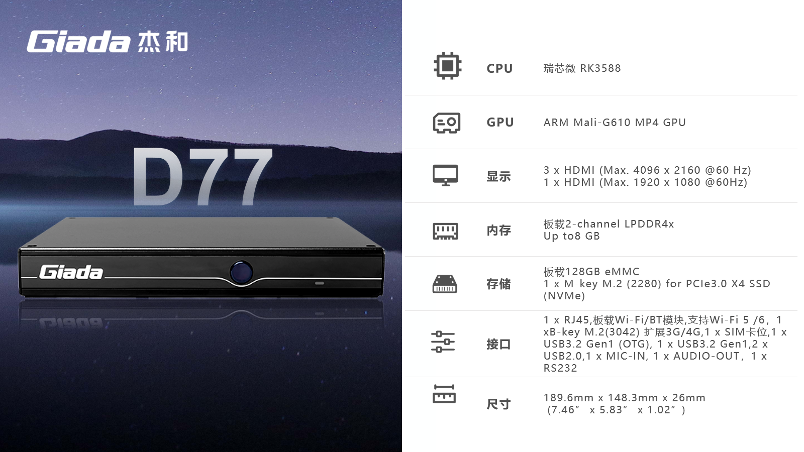 AIoT的落地场景包括智慧工业、智慧零售、智慧社区、智慧城市、智能显示、医疗健康等领域,在实际落地时,对物联网硬件设备的AI算力、数据运算、存储能力,稳定性及可扩展性能等提出更高要求,Giada米兰milan科技作为行业领先的物联网数智化技术服务商,深入布局AIoT领域,推出AI产品系列,包括3.5寸主板、嵌入式整机、边缘计算盒子等,全方位覆盖了入门级到高性能级,满足不同应用场景的需求,为用户赋能。