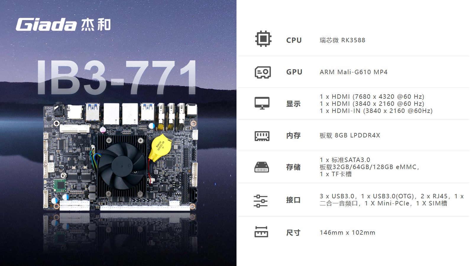米兰milan科技嵌入式主板IB3-771是8K人工智能主板,拥有轻算力的它可用于机器人、边缘计算、智能NVR、智能汽车、智慧大屏、AR/VR、ARM PC、智能自助终端等领域,还可用于监控、工业、餐饮、智能交通、文娱产业等对超高清视频需求旺盛的行业;