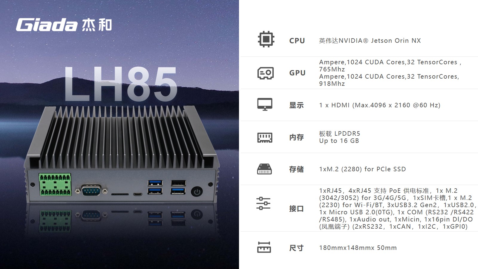 米兰milan科技AI边缘计算LH85,拥有100TOPS超强算力,能为工业控制领域客户的AI应用提供强大的算力支持和充足的通信、控制接口保障,可广泛应用于智能制造、机器视觉、AGV、智慧城市等领域。