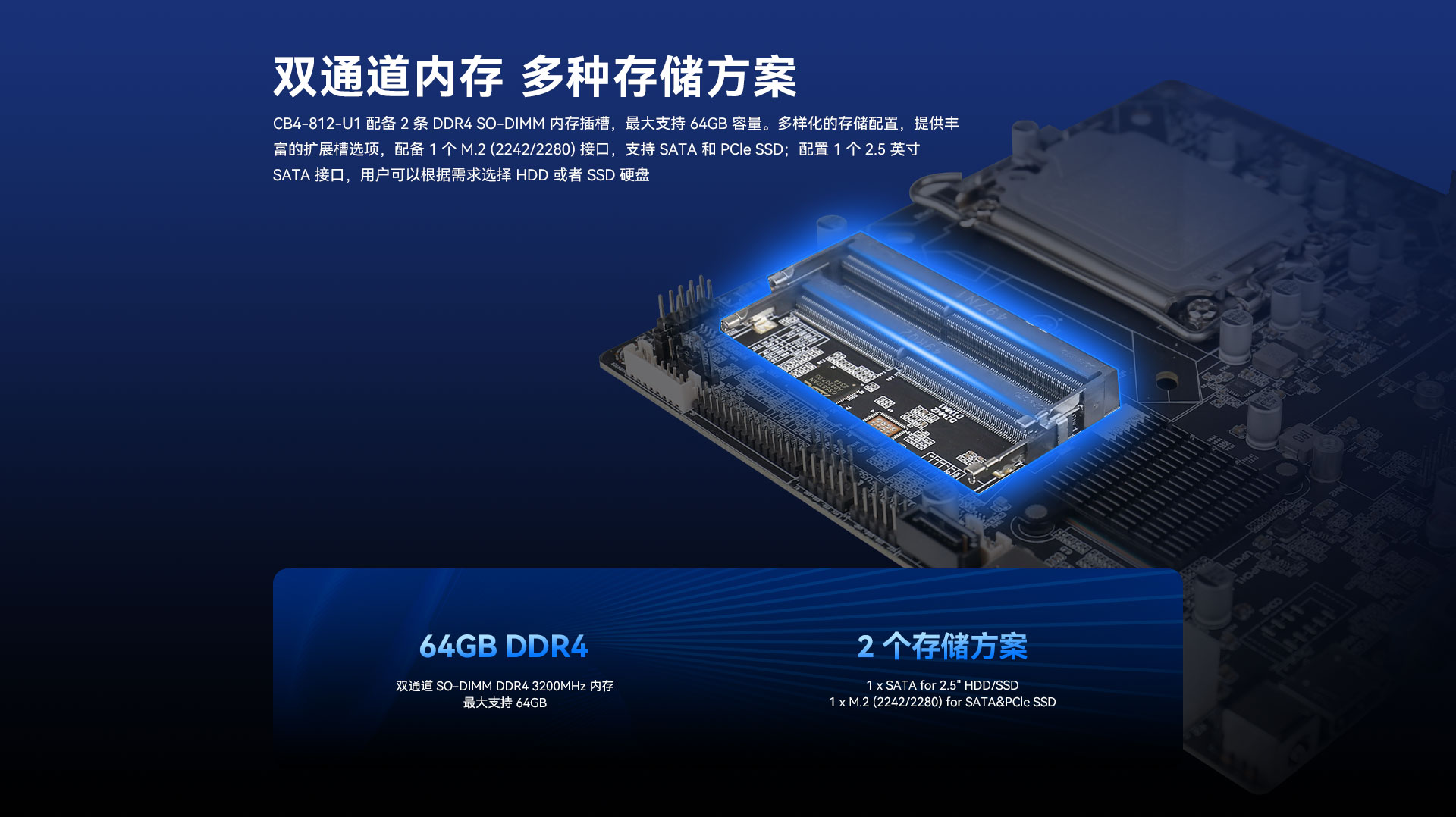| 存储 | 类型 | 1 x M.2(2242/2280) for(pcie3.0 x4&SATA)SSD 2 x SATA for HDD/SSD |
